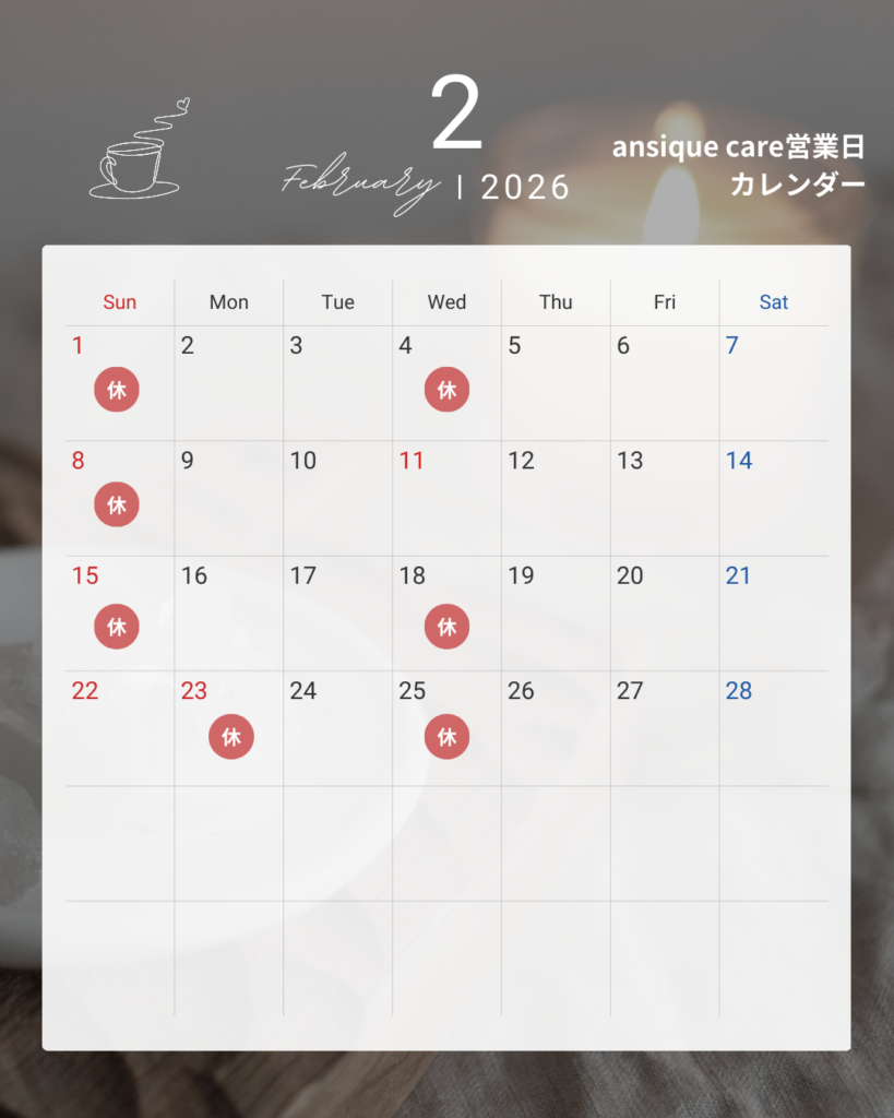 ansique careは基本的に『水曜日・日曜日・祝日』は定休日となっております。