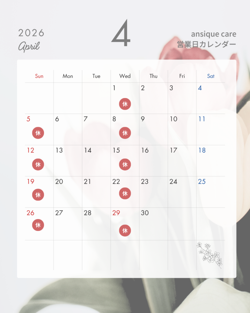 ansique careは基本的に『水曜日・日曜日・祝日』は定休日となっております。